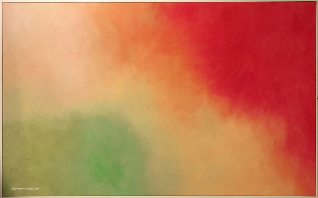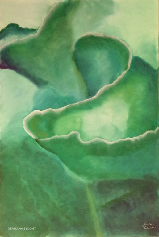 Le grandi tele con i fiori di loto segnano un’evoluzione della pittura che abbandona i confini del figurativo e tende all’astrazione. I fiori che prima si stagliavano netti nello spazio, ora si perdono in esso, cercano la fusione. E lentamente si arriva fino alla loro dissoluzione. Le tele diventano più grandi e la pittrice mescola i colori e li sfuma fino ad ottenere morbide trasparenze ed effetti di consistenza luminosa.