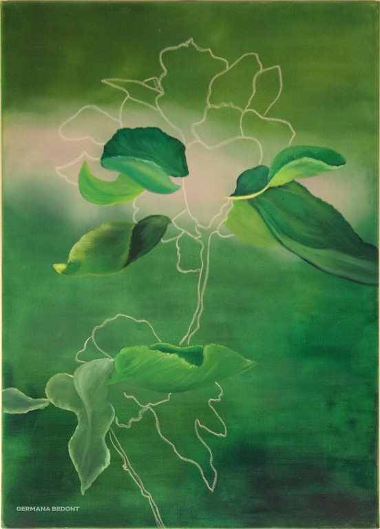 Si delineano i temi che sente più vicini ed emerge l’interesse per i fiori, che non è facile ripiegamento verso un soggetto di tradizione. Tutt’altro. Sono un soggetto che le appartiene e permea i suoi ricordi fin dall’infanzia trascorsa in montagna. La pittrice traccia i suoi primi fiori senza accorgersene. Quasi in una sorta di trans. Lavora su tela, con l’olio. Non disegna, ma affronta direttamente la tela con il colore usato a secco. Clematidi selvatiche, tulipani, lillium, narcisi, le amate peonie, i cardi, ombrellifere, piante erbacee reperibili in boschi e prati freschi. Gli anemoni della nonna. Sono tutti fiori campestri, con proprietà officinali. Le orchidee le mettono soggezione, rivela.